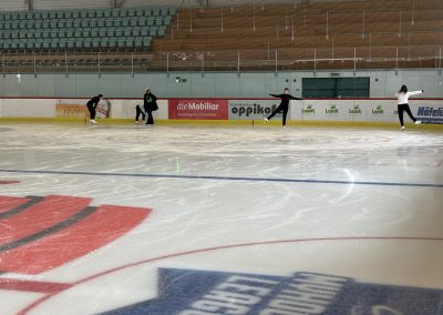 Nach dem Testvormittag fand am späteren Nachmittag noch die Moniteurschulung statt. Andrea Bolli und Jacqueline Schmid gaben den anwesenden Kurs- und Hilfsleiterinnen viele wertvolle Tipps mit für ihre Arbeit mit den Kindern. Auf dem Eis wurden die Anregungen gleich praktisch umgesetzt:, In kleinen Übungseinheiten konnten die Leiterinnen direkt ausprobieren, wie sich die Inhalte in der Praxis anwenden lassen.